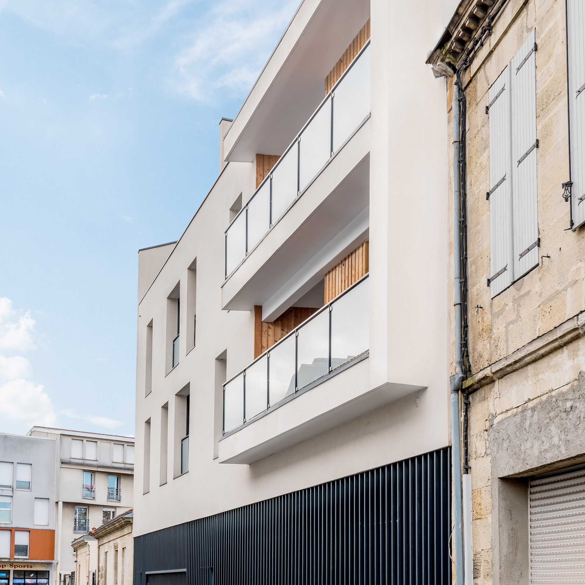 Ce projet de logement collectif prévoit un esemble de 12 logements. Chaque logement dispose d'une terrasse afin de favoriser au maximum l'éclairage des espaces de vie par une lumière naturelle. La façade sur rue reçoit un traitement en tôle aluminium gris anthracite pour le soubassement, une agraffe béton au R+1 et R+2 couvrant des terrasses, un rythme d'ouverture aléatoire et dynamique. Le R+3 en attique permet de bénéficier d'une terrasse sur toute la largeur du bâtiment.